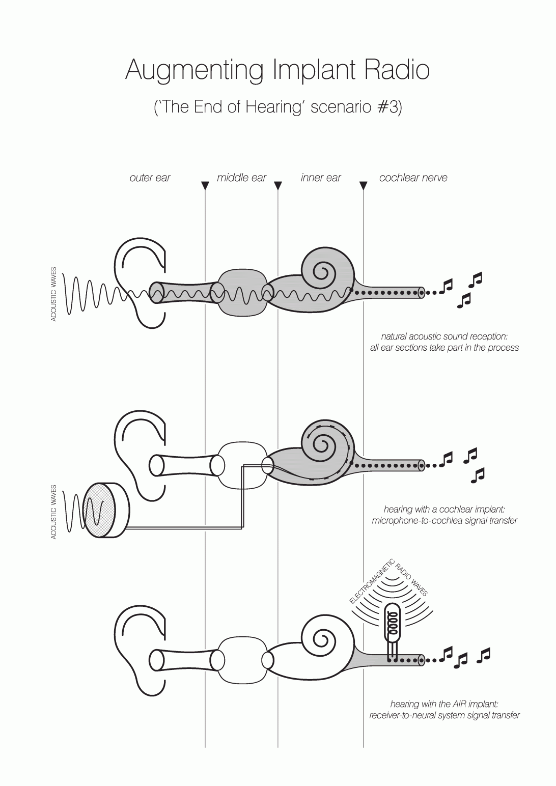 AIR implant is part of a critical design project titled ‘The End of Hearing’. It aims at communicating science to the public and democratising the discourse around possible futures, to which current scientific developments—such as implant technologies—can lead.