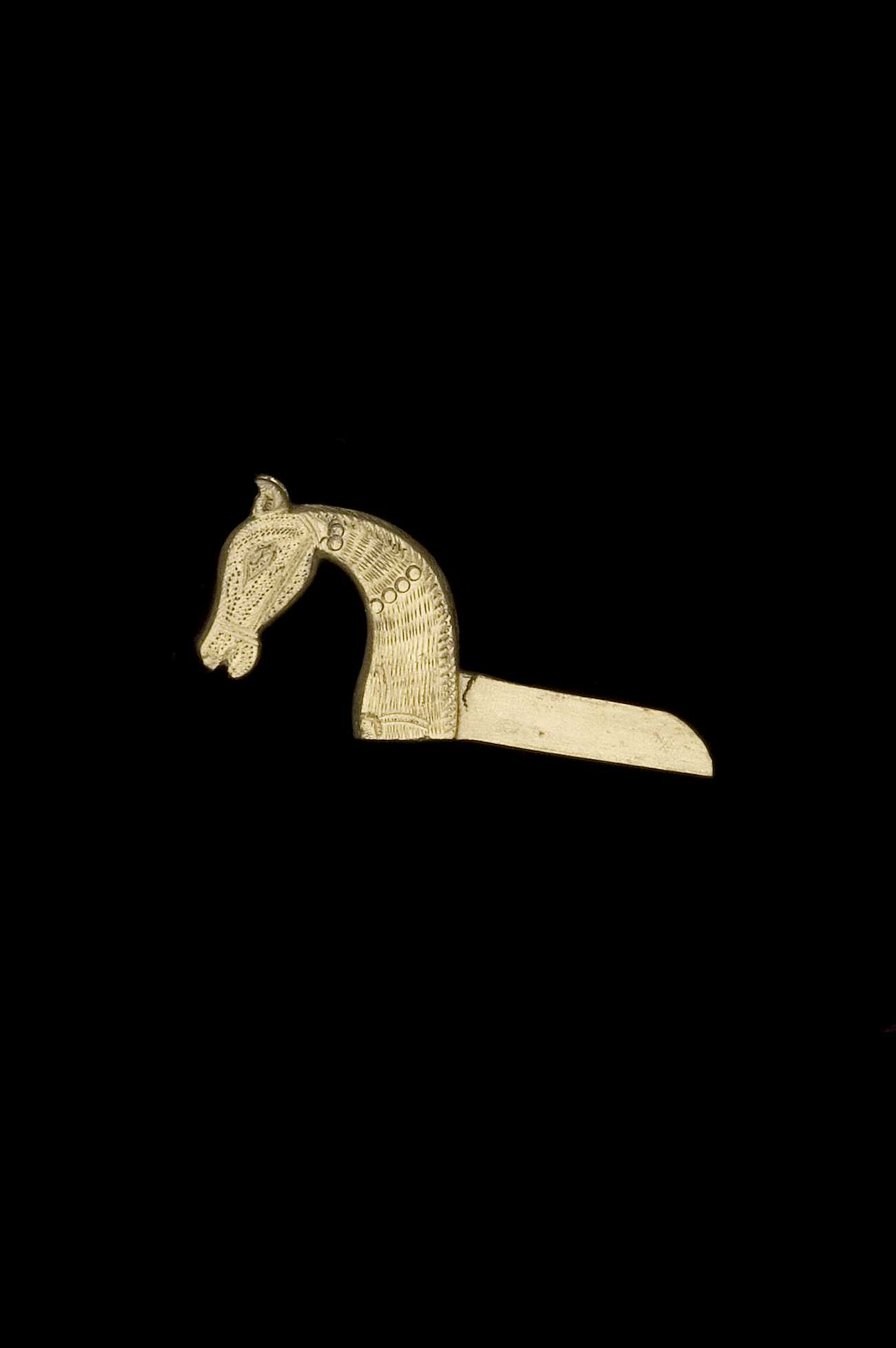An unusually artful 'horse' (wedge) to hold the pieces of an astrolabe together.