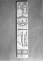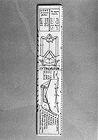 An ivory rule, smaller than catalogue no. 68, but very similar in content. In fact the rule, protractor, fortification diagrams and tables are all equivalent, and similarly disposed between 'INTRORSUM' and 'EXTRORSUM', except that this rule has an additional diagram with an accompanying key marked: 'Pro Alis Fortificandis', giving the names of the various parts in French and, in one case, the function: 'Triangle qui couwa les Canons Cachè.'