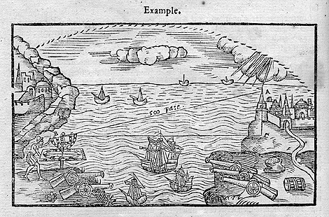 Figure 63. Range-finding with Digges's 'topographical instrument'.