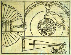 ![]() Apianus' illustration of measuring lunar distances in Cosmographia |