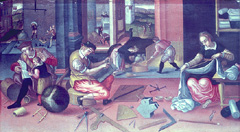 | Even in its more mundane applications the utility of mathematics was clear to 16th century observers. This fact is graphically demonstrated in the painting The Measurers, which presents everyday 16th century uses of practical mathematics in gauging activities. In light of what has been said above it is unsurprising that the instrument maker sits in the center of The Measurers. |