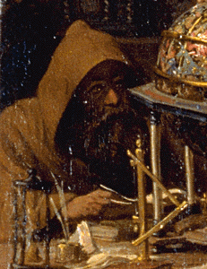 One of the two monks or friars depicted in the portrait, this one seated at the table with an open book, but looking at Tycho.