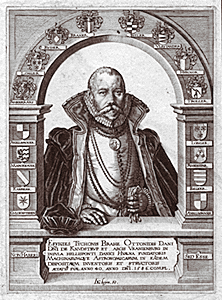 Portrait of Tycho by the Flemish engraver Jacob de Gheÿn (1565-1629). The portrait is dated 1586 and the inscription reads: 'Likeness of Tycho Brahe, son of Otto the Dane, Lord of Kundstrup, founder of the Castle of Uraniborg on the Island of Hven in the Danish Hellespont, and inventor and builder of the astronomical instruments used there.' Along with a companion engraving by Gheÿn (see Image 41), it formed the prototype for many subsequent likenesses.