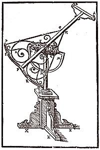 The 'arcus bipartitus' from Tycho's observatory as illustrated in his Astronomiæ instauratæ mechanica (Wandesburg, 1598). Compare with the instrument made for the Beijing observatory (Image 61).