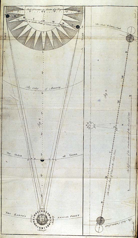 . James Fergusons diagram showing the geometry of the transit, from David Brewster, Fergusons Astronomy, explained upon Sir Isaac Newtons Principles (Edinburgh, 1811). This late edition of Fergusons astronomy textbook appeared as a three volume set: two volumes of text and a quarto volume of folding plates. This is plate XV.