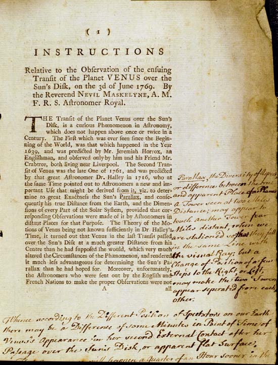 Instructions relative to the Observation of the ensuing Transit of the Planet Venus over the Suns Disk