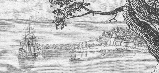 . Detail from an engraving of Matavai Bay in Tahiti, showing James Cooks ship Endeavour at anchor off Fort Venus, where his observations of the transit were made in 1769. From John Hawkesworth, An Account of the Voyages undertaken by the Order of His Present Majesty. For making Discoveries in the Southern Hemisphere. And successively performed by Commodore Byron, Captain Wallis, Captain Carteret, and Captain Cook, in the Dolphin, the Swallow, and the Endeavour: drawn up from the Journals which were kept by the several Commanders and from the Papers of Sir Joseph Banks, Bart. 4th ed., 4 vols (Perth, 1789), frontispiece to vol. II.